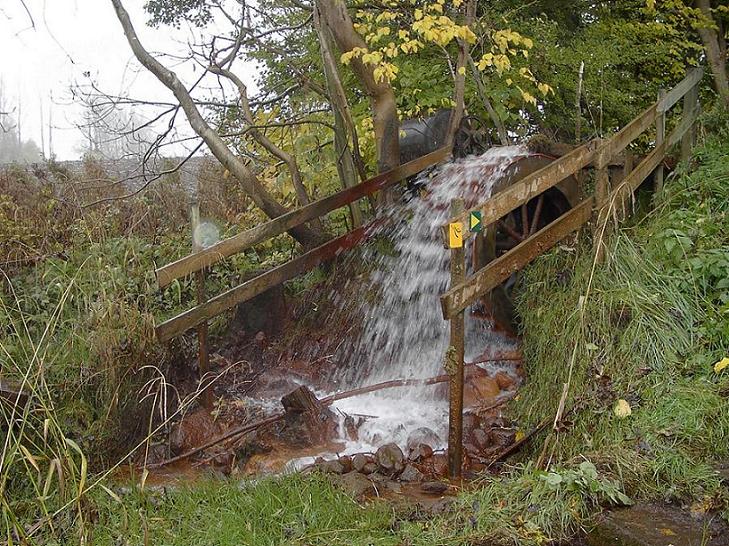 Pas på vandhjulet – det er farligt. Der har tidligere været dræbt en mand af det store vandhjul. Efter dette dødsfald blev der lavet en bundklap i træ-akvædukten, så man kunne lukke vandet ud og stoppe hjulet.