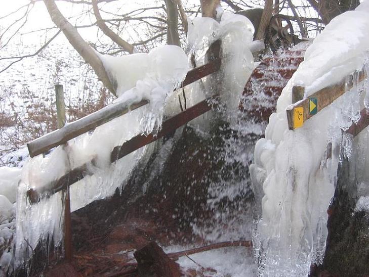Vinterbillede af møllehjul ved Hestemøllegård (24. januar 2010)